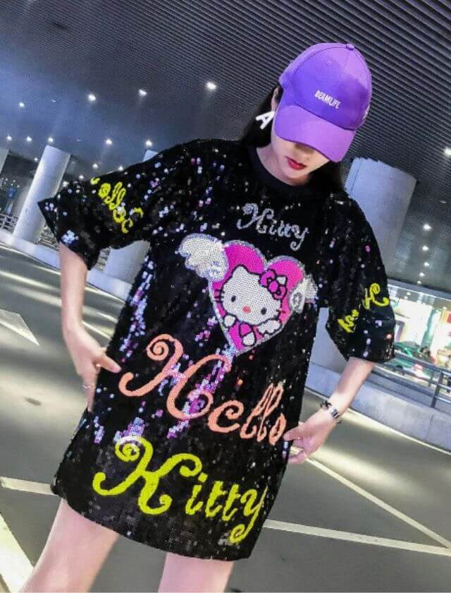 Hello Kitty Cartoon Fashion Sequin T-Shirt Dress